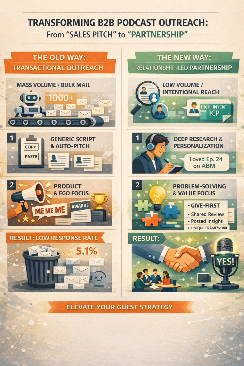 It’s the digital equivalent of a hard sales pitch. It's transactional, self-serving, and exhausting. And if you are the host of a top-tier B2B podcast, this email has already been deleted.